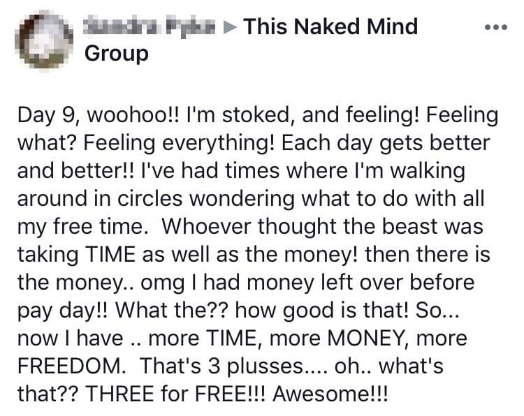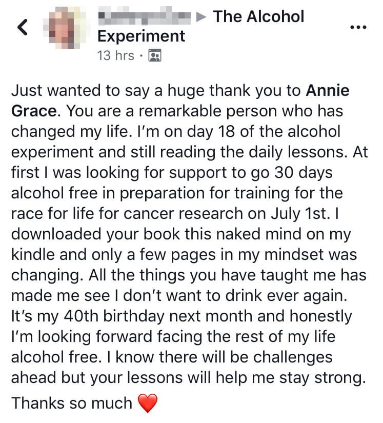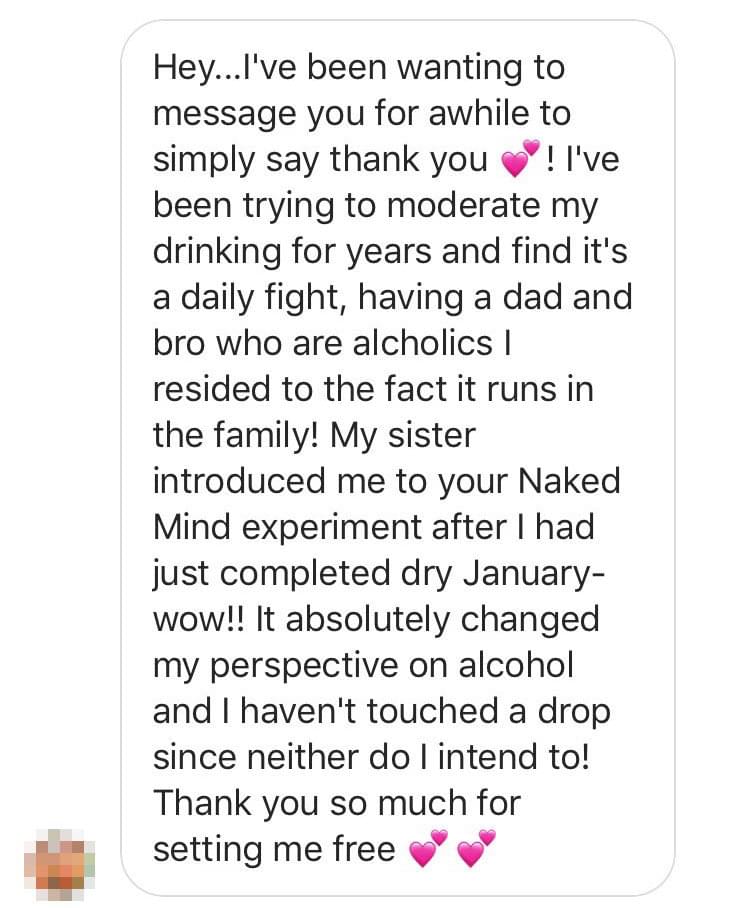 And an amazing thing happened: just learning this information shifted my perspective and changed my drinking patterns. Just having that knowledge completely changed my thinking about alcohol and gave me freedom from a very deep and very dark place. It gave me my choice back.