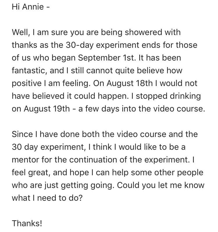 What would you say if I told you that in just 30 days I could change the way you view alcohol - and take away your desire to drink and put you back in the driver's seat in your relationship with alcohol?